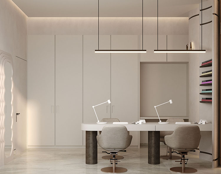 Believe Studios was designed by award winning architecture & design firm, Hacin, whose work specializes in guest experience and includes the W & Whitney Hotels in Boston. Refined, elegant and inspired by leaders in hospitality, all elements were created with the beauty and wellness professional in mind. Our studios feature a warm neutral color palette ready for your brand vision. Each studio comes fully equipped with a large wash sink, sound insulated walls, custom cabinetry, seating for extra clients, custom interior lighting, custom lit mirrors, and ample storage areas. Hair suites also come with styling chairs featuring pull out desks, shampoo bowls with luxury comfort recliners, and anti-fatigue mats. Wellness rooms come with a heated massage table. All utilities and wifi are included.